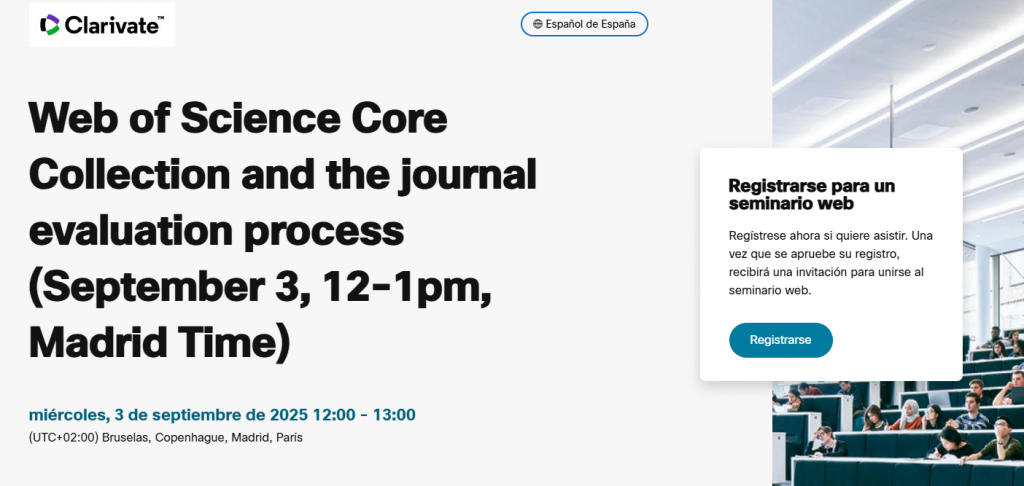 Clarivate ha anunciado la celebración de un seminario online dirigido de forma exclusiva a editores de revistas científicas. Se trata de una formación independiente de la FECYT, organizada para dar respuesta a la creciente demanda de este tipo de actividades por parte de la comunidad editorial.