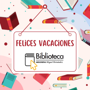 Estimada comunidad universitaria, os informamos de que, a partir del 1 de agosto y durante todo el mes, las Bibliotecas de la UMH permanecerán cerradas con motivo de las vacaciones de verano, no obstante, podéis consultar la relación de Aulas de Estudio que permanecerán abiertas en los distintos campus, así como sus respectivos horarios de apertura. El próximo 1 de septiembre reanudaremos nuestra actividad con todos los servicios y en nuestro horario habitual.