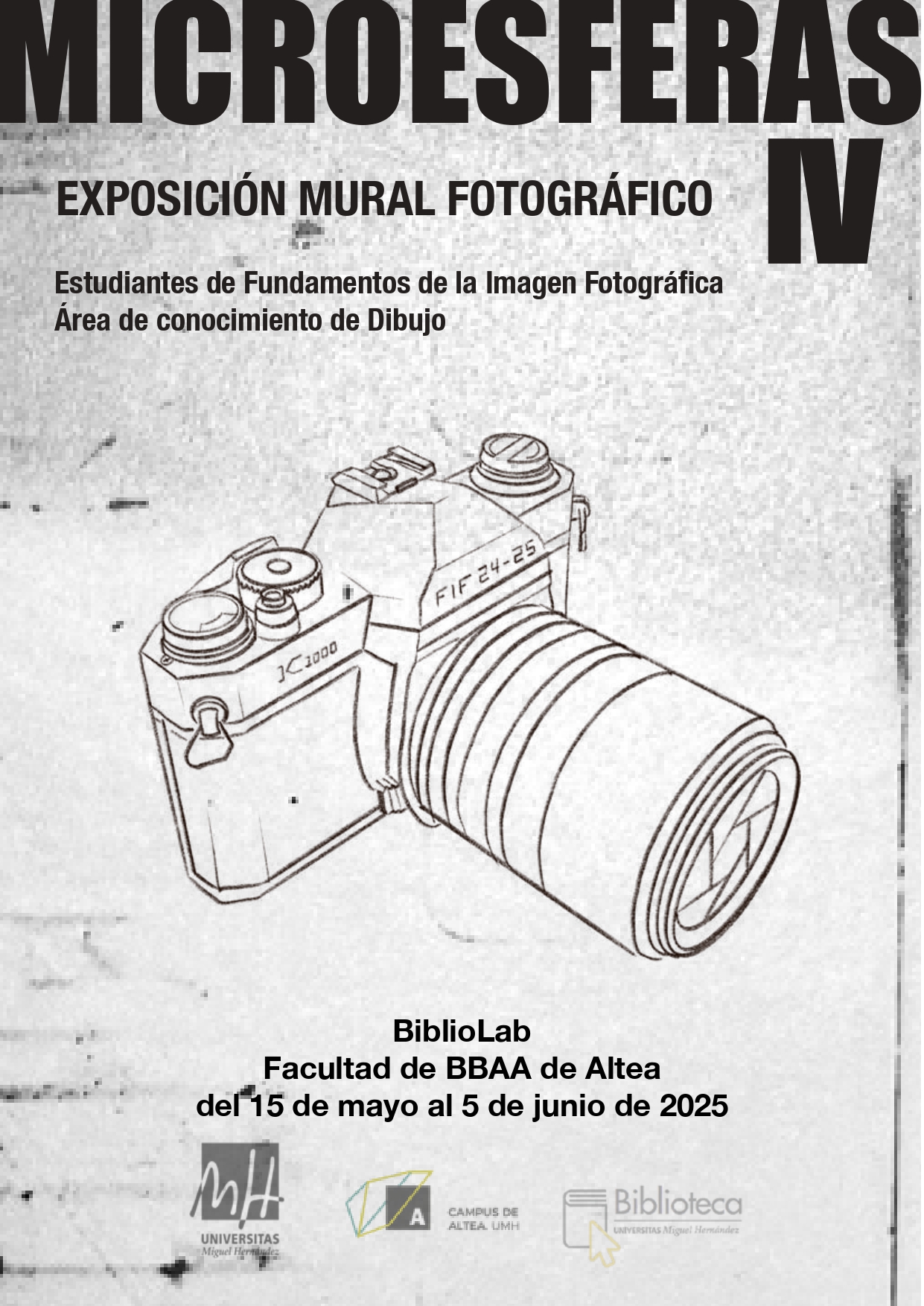 Microesferas 4 is an exhibition that brings together a selection of photographic works made during the academic year 2024-2025 by the students of the subject ‘Fundamentals of the Photographic Image’ of the 1st Degree in Fine Arts of the Faculty of Altea. In this fourth edition, the selection is shown in the form of a photographic mural based on various snapshots of a documentary genre and of an analogue nature (printed in the laboratories of the Faculty of Fine Arts in Altea). The curatorship is the responsibility of the teachers of the subject Carmen G. Muriana and Vicente Miña, belonging to the Area of Knowledge of Drawing.